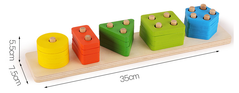 - Montessori toys for toddlers : Wooden sorting and stacking puzzle contains 25 pieces including five colors: red, orange, yellow, green and blue, and five shapes: pentagon, square, rectangle, triangle and circle.