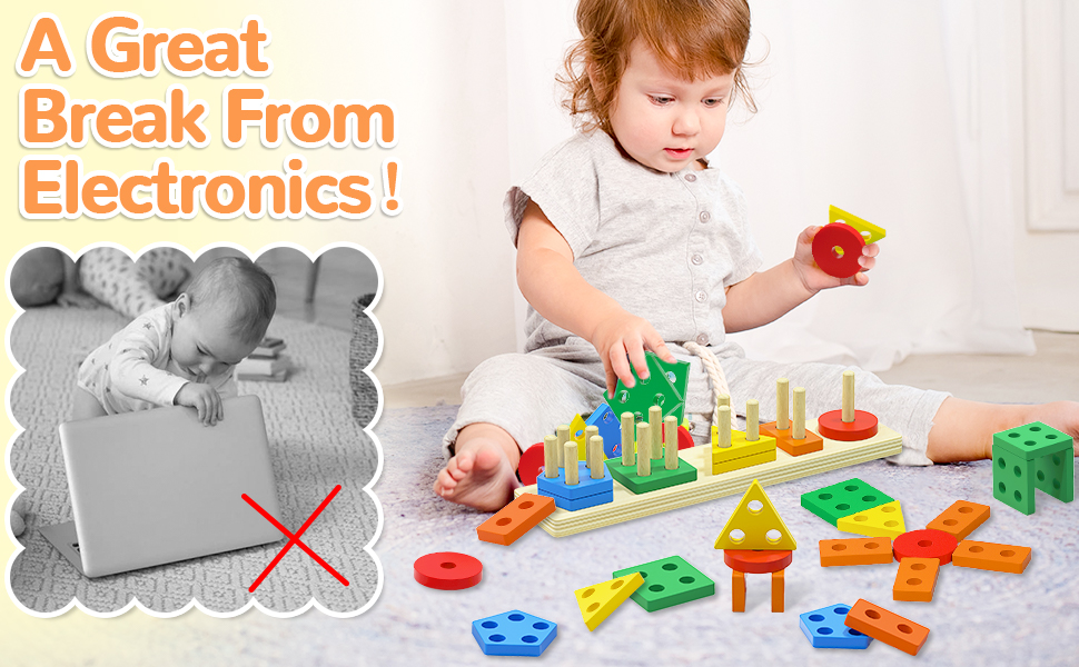 - Safe and high-quality toddler toys : We insist on using high quality wood raw materials to provide safe and fun toys for toddlers. The toddler learning toys with a moderate geometric size and smooth edges, can be grasped well by babies while protecting the baby’s delicate skin. We also use the water-based paint, the color more vivid, non-toxic, odorless and anti-fade, for your baby safe and happy childhood.