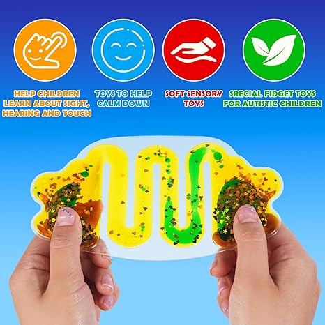 - Stress-Relieving water sensory toys: Offering a dual sensory experience of sight and touch, the flowing liquid and the squishy feel of the soft gel help alleviate anxiety and stress. Suitable for both children and adults, these sensory squishy toys serve not only as stress-relievers but also aid in enhancing attention and focus
